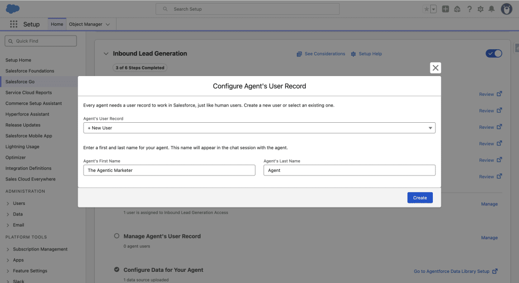 Guided Setup to install and configure Agentforce Inbound Lead Generation