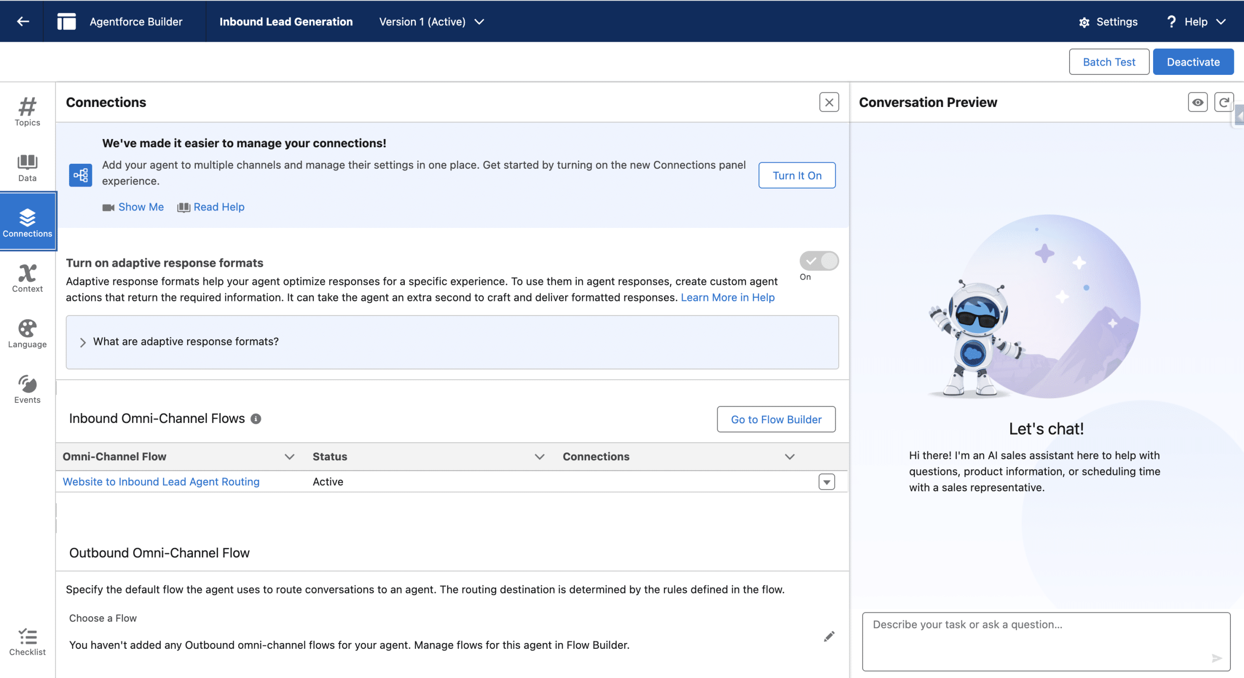 Making the Agentforce Inbound Lead Generation available from the website.