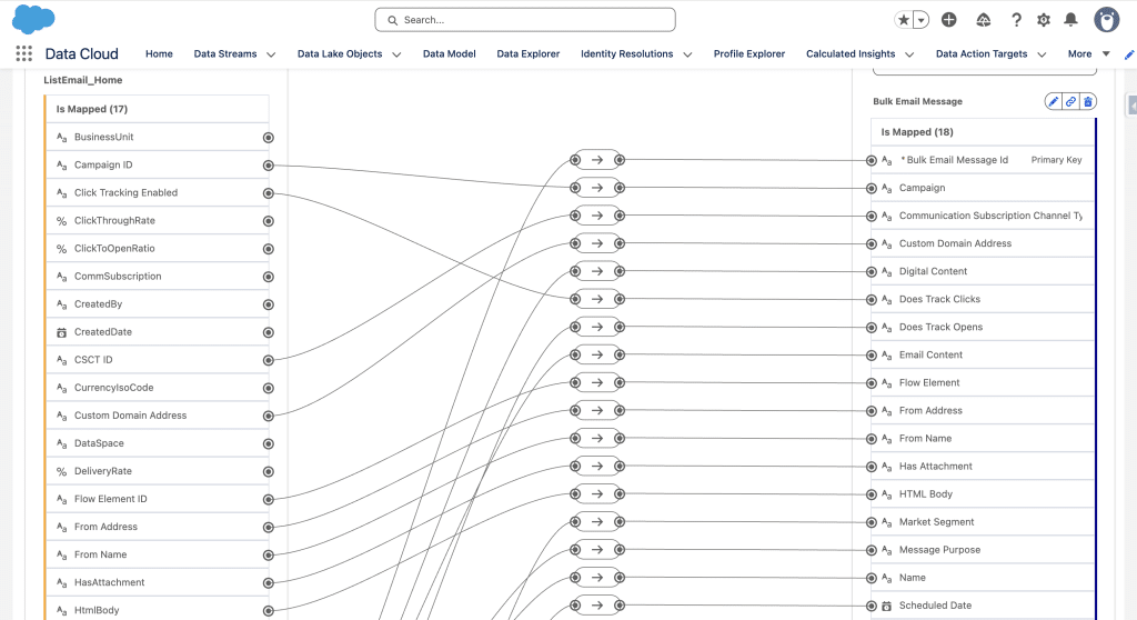 These Data Streams are mapped to the same Standard Performance DMO used by Agentforce Marketing (Marketing Cloud Next). You can then use them as standard data. That’s Asset Performance data Convergence in action.