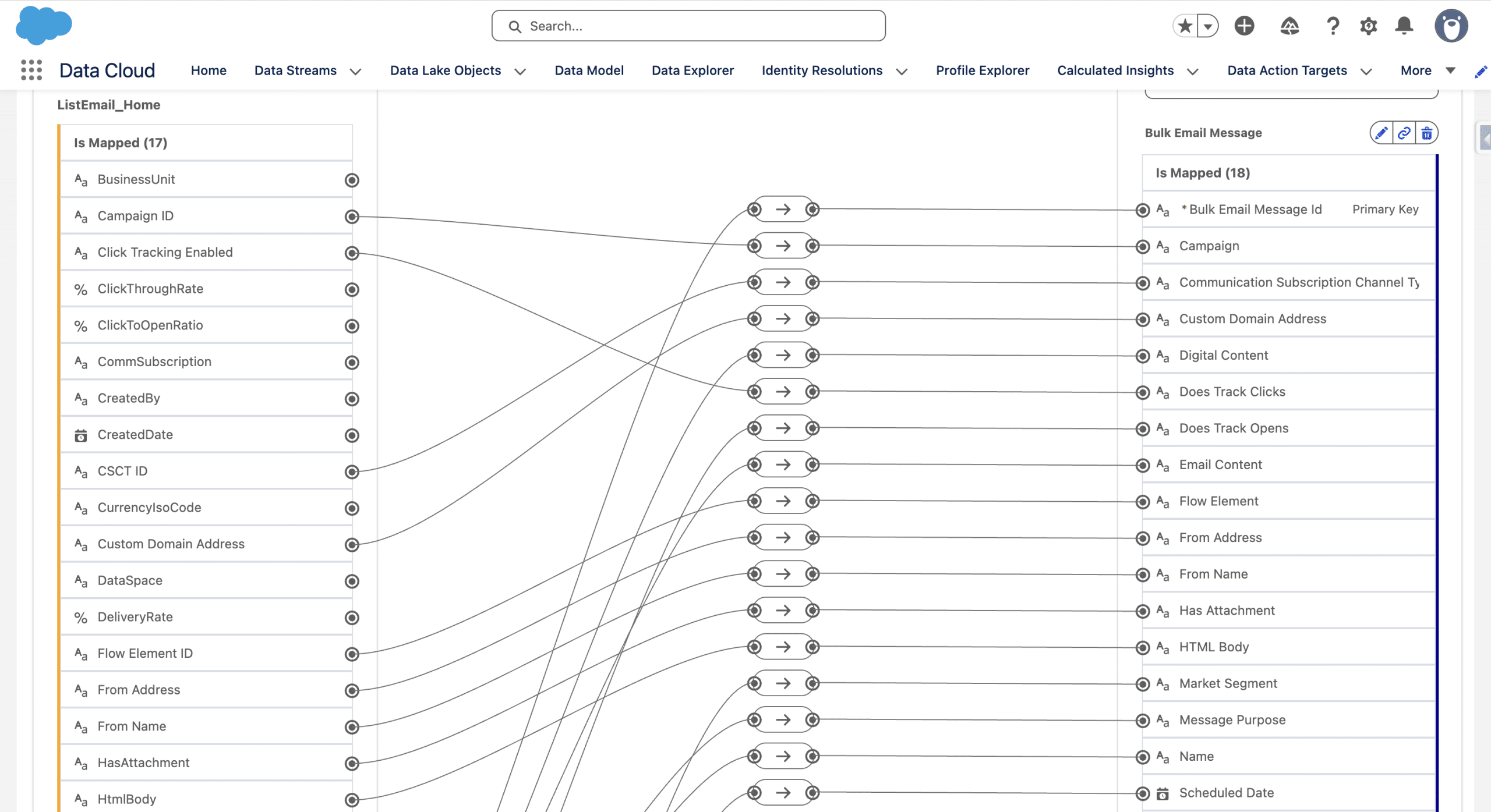 List Email Performance data is mapped to the standrad Bulk Email Message DMO