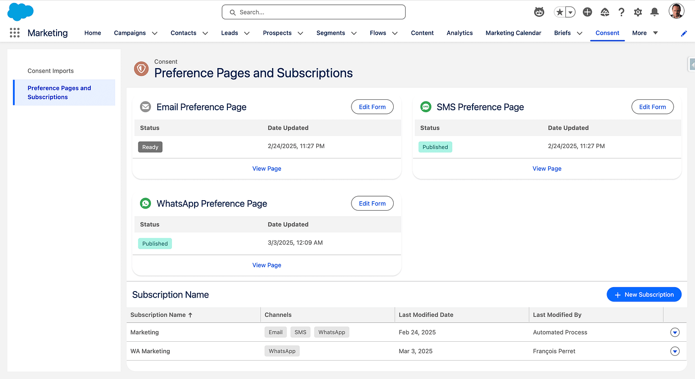 In Pardot, Do Not Email and Opted-Out are two Mailability Fields. Bounces are also taken into account when checking if a Prospect can be sent an Email, and of what type (Marketing or Transactional, which Marketing Cloud Next (Growth & Advanced) also handles). You also have Public Lists in Pardot, which is the only type of List that can handle opt-in or opt-out. Marketing Cloud Next has a very similar feature, called Subscription Consent. This is a unified way to handle consent in a multi-channel context.