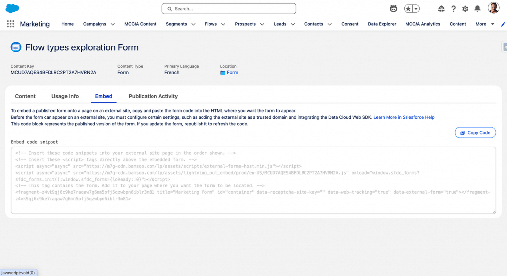 Pardot Forms can be natively embedded in Landing Pages, Pardot-built or on an External site via an iframe. There are also the From Handlers which are basically end-points receiving external Forms submission data. In Marketing Cloud Next (Growth & Advanced), there is no Form Handler as of today. Forms, both on internal and external (iframe) Landing Pages are supported, and stored in the enhanced CMS, with a Builder similar to the one used for Emails and Landing Pages. As of today, there is no pre-filling nor Progressive Profiling available.