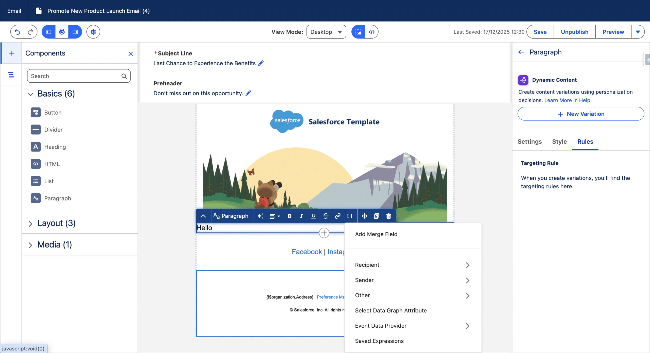 Then select your Field (it is a Form’s input Field) and add it as you would normally do with any Merge Field for personalization. Don’t forget to publish the Email.