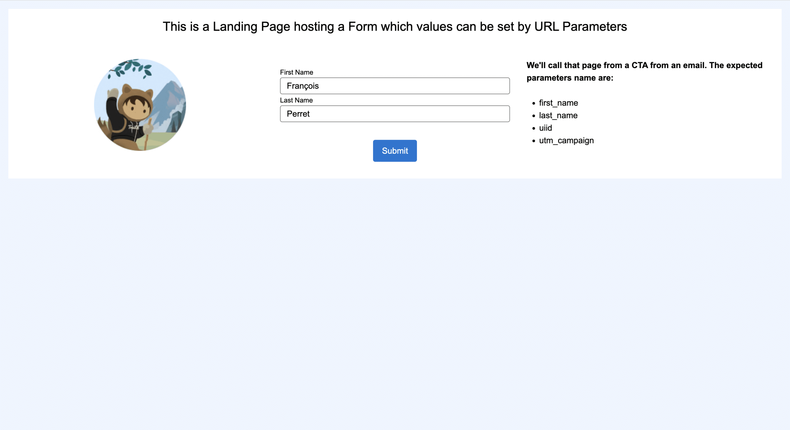 We now need to create inside an email the same URL, with the parameters so that when a recipient clicks on it, the Landing Page is prefilled with the related informations.