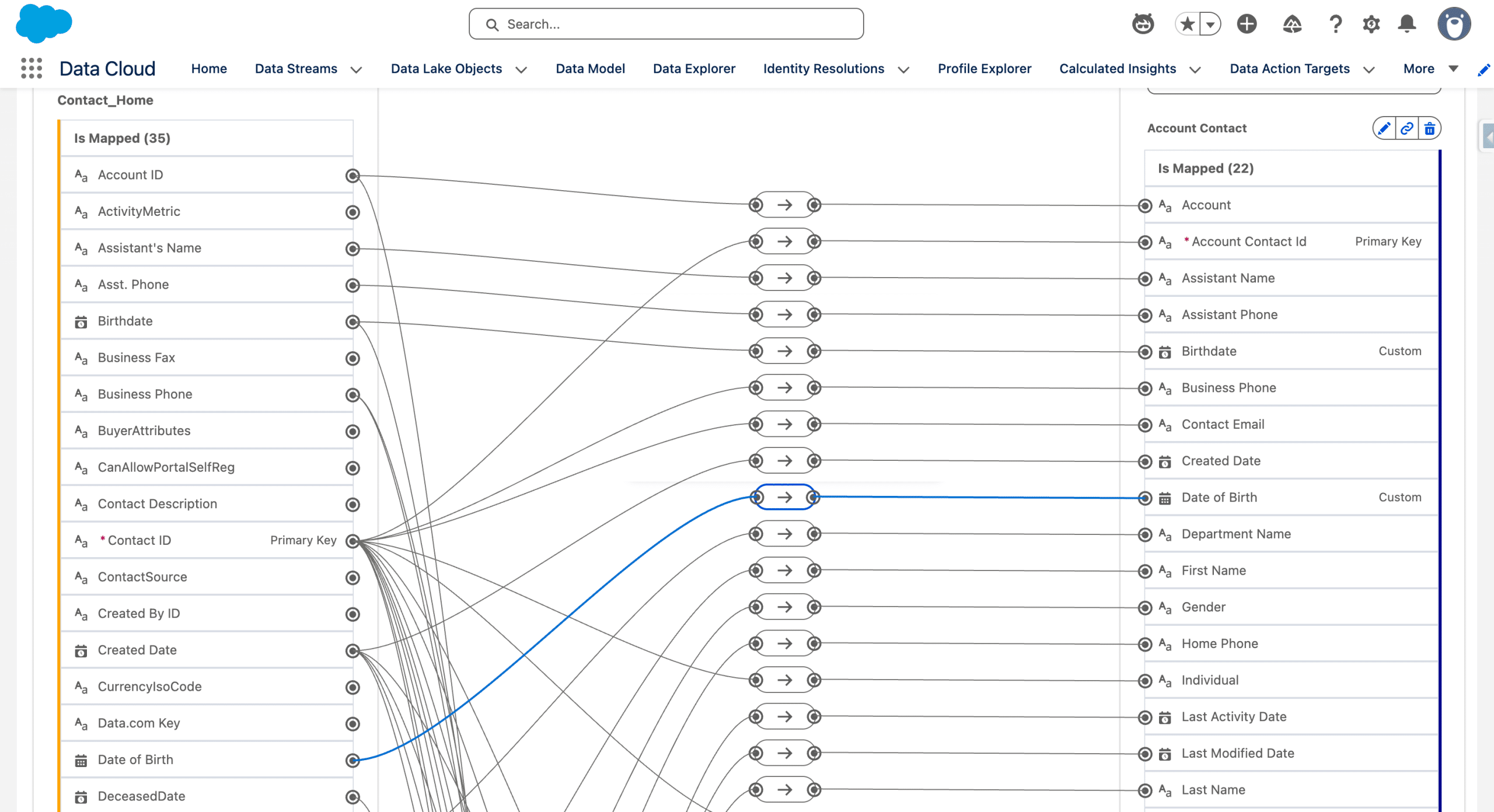 Then we map that new Field to a new Date Field, using the same name on the Account_Contact DMO.