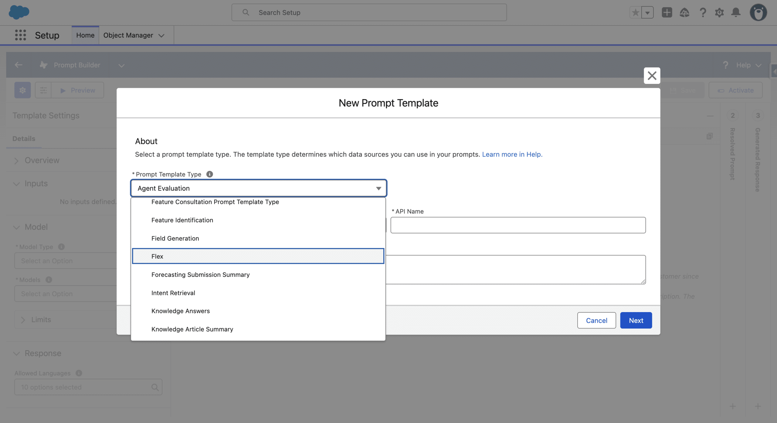 Calling the Flex Prompt Template